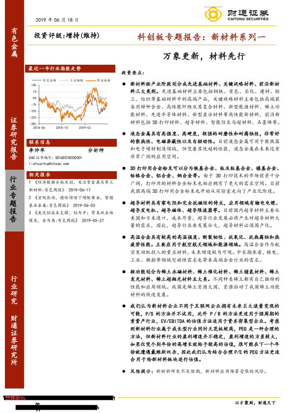 【财通证券】【20190618】20190618-财通证券-有色金属科创板专题报告:新材料系列一:万象更新,材料先行-44页
