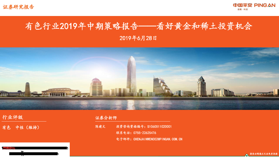 【平安证券】【20190628】有色行业2019年中期策略报告——看好黄金和稀土投资机会-26页