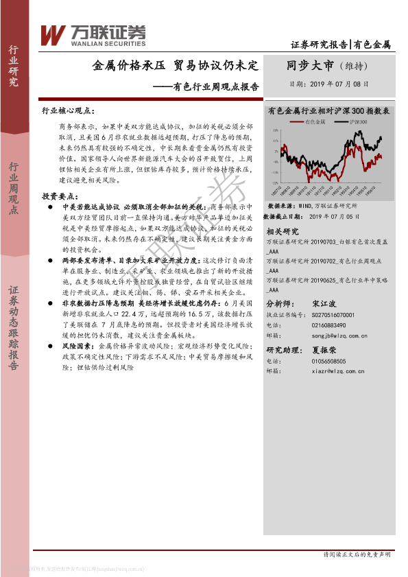 【万联证券】【20190708】20190708-万联证券-有色行业周观点报告:金属价格承压 贸易协议仍未定-12页