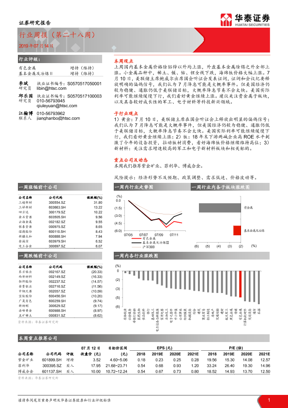 【华泰证券】【20190714】20190714-华泰证券-有色金属行业周报(第二十八周)-13页