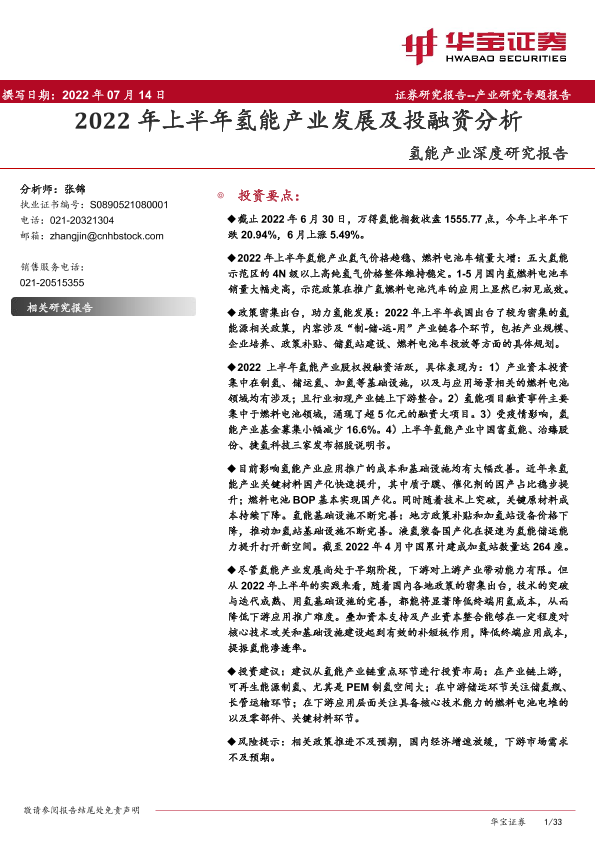 【华宝证券】【20220714】2022年上半年氢能产业发展及投融资分析-33页