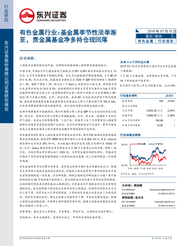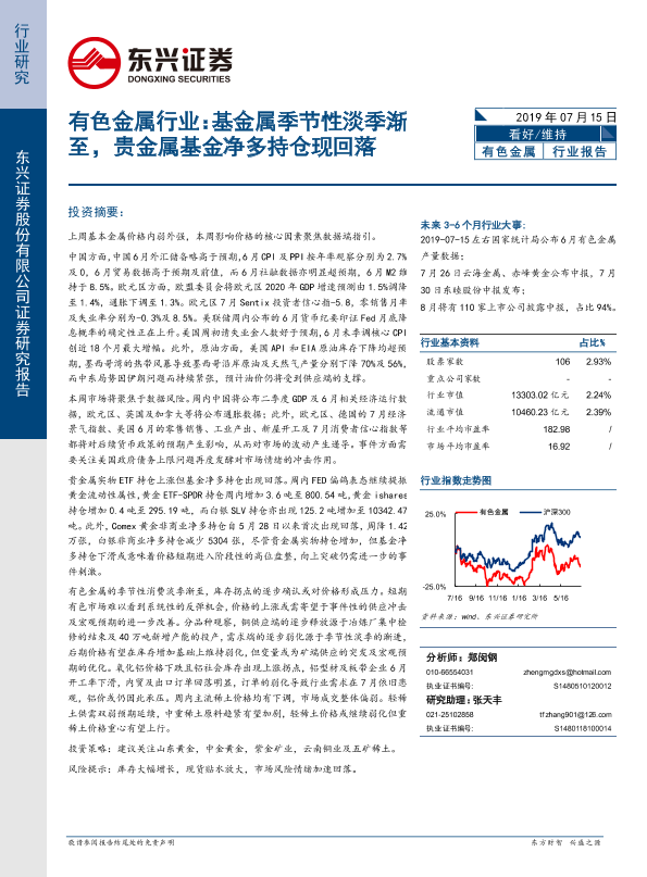 【东兴证券】【20190715】20190715-东兴证券-有色金属行业:基金属季节性淡季渐至,贵金属基金净多持仓现回落-15页