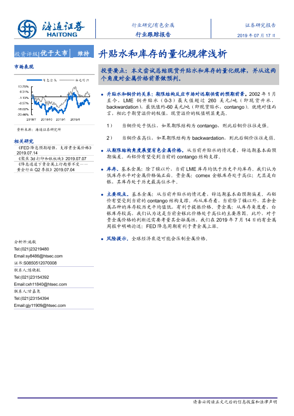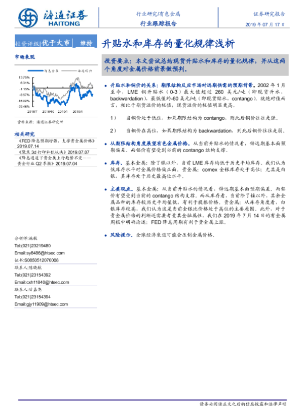 【海通证券】【20190717】20190717-海通证券-有色金属行业跟踪报告:升贴水和库存的量化规律浅析-9页