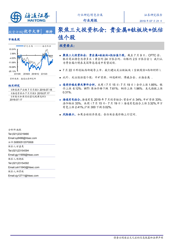 【海通证券】【20190721】20190721-海通证券-有色金属行业周报:聚焦三大投资机会:贵金属+钛板块+低估值个股-9页