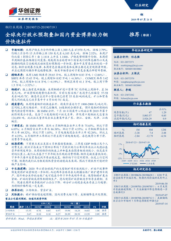 【华创证券】【20190721】20190721-华创证券-铜行业周报:全球央行放水预期叠加国内资金博弈助力铜价快速拉升-18页