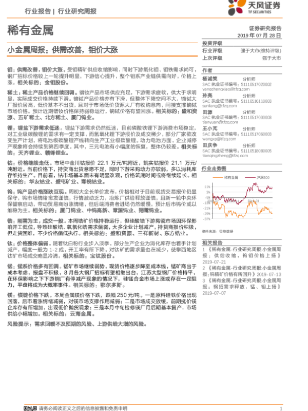 【天风证券】【20190728】20190728-天风证券-小金属周报:供需改善,钼价大涨-16页