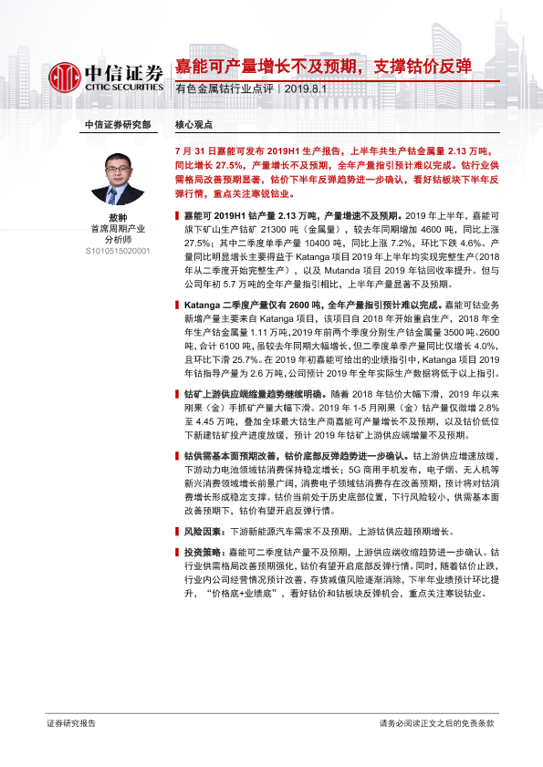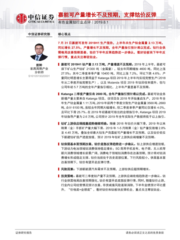 【中信证券】【20190801】嘉能可产量增长不及预期,支撑钴价反弹-2页