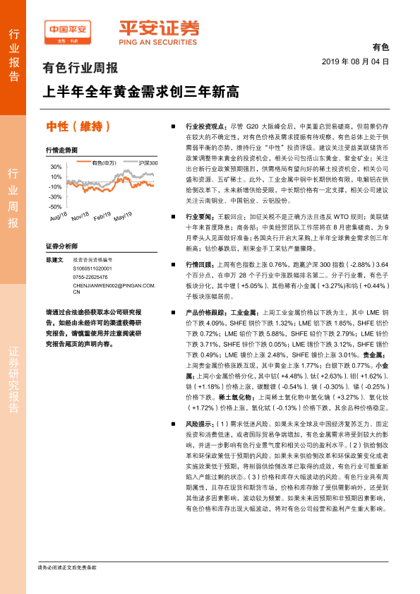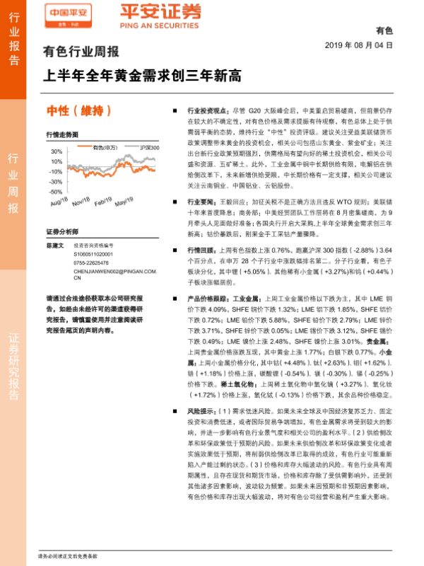 【平安证券】【20190804】20190804-平安证券-有色行业周报:上半年全年黄金需求创三年新高-5页