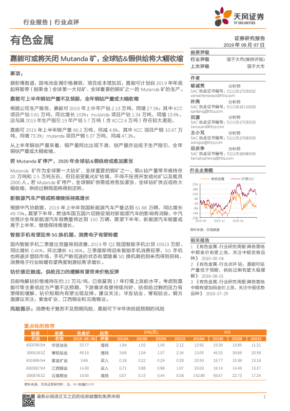 【天风证券】【20190807】嘉能可或将关闭Mutanda矿,全球钴&铜供给将大幅收缩-2页