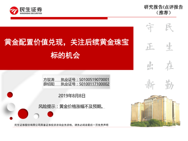 【民生证券】【20190808】20190808-民生证券-有色金属行业:黄金配置价值兑现,关注后续黄金珠宝标的机会-5页