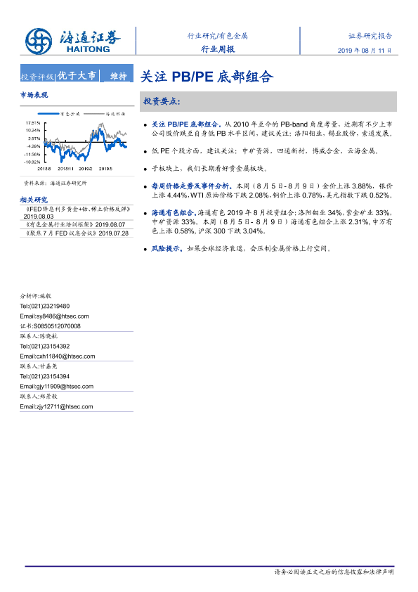 【海通证券】【20190811】20190811-海通证券-有色金属行业周报:关注PB PE底部组合-8页