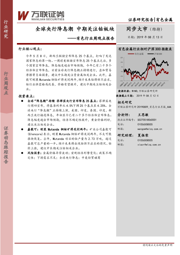 【万联证券】【20190813】20190813-万联证券-有色行业周观点报告:全球央行降息潮 中期关注钴板块-13页