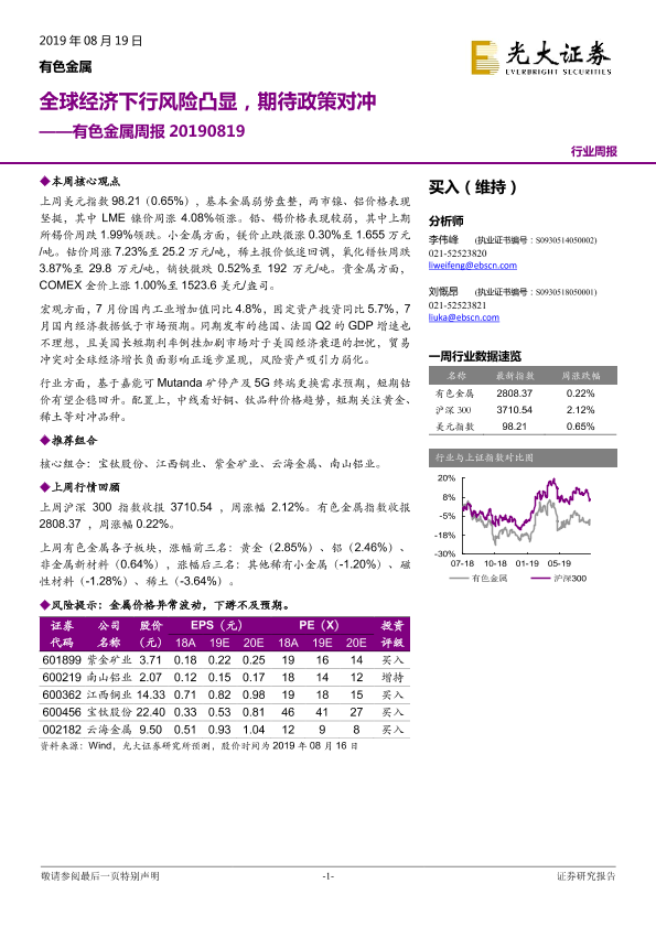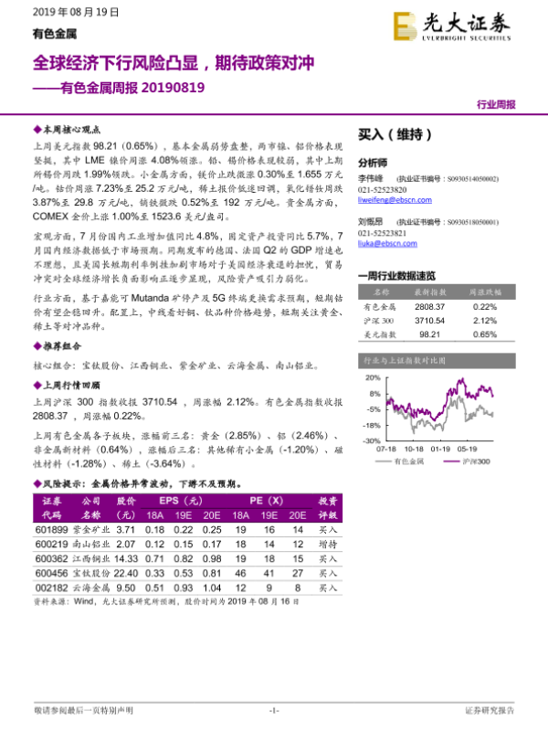 【光大证券】【20190819】20190819-光大证券-有色金属周报:全球经济下行风险凸显,期待政策对冲-14页