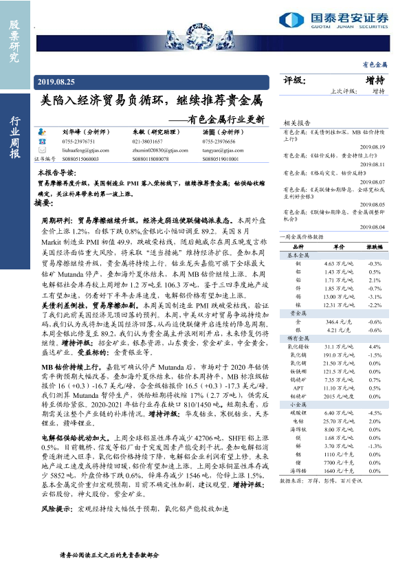 【国泰君安证券】【20190825】美陷入经济贸易负循环,继续推荐贵金属-14页