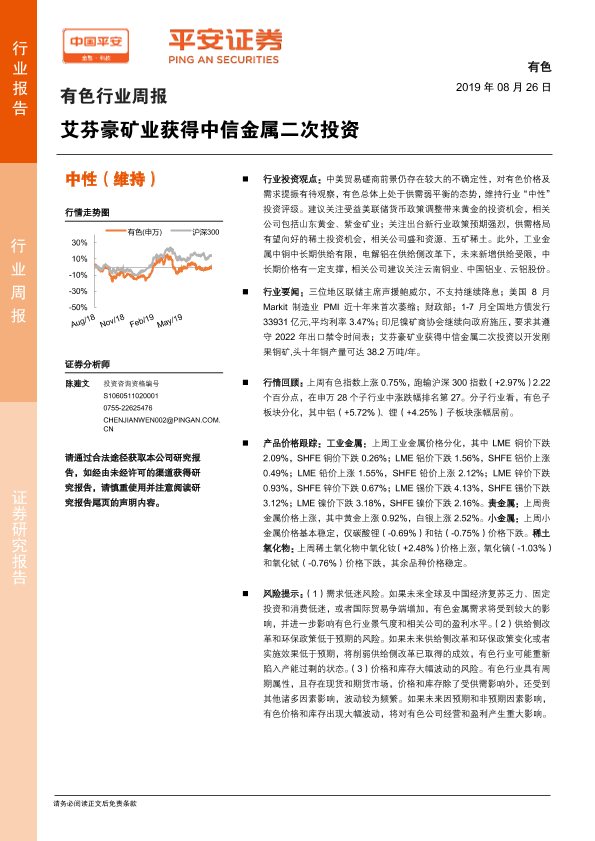【平安证券】【20190826】有色行业周报:艾芬豪矿业获得中信金属二次投资-5页