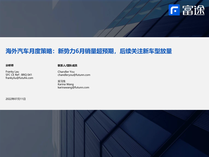 【富途证券】【20220711】海外汽车行业月度策略:新势力6月销量超预期,后续关注新车型放量-24页