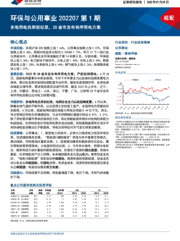 【国信证券】【20220709】环保与公用事业行业202207第1期:多地用电负荷创纪录,28省市发布有序用电方案-29页