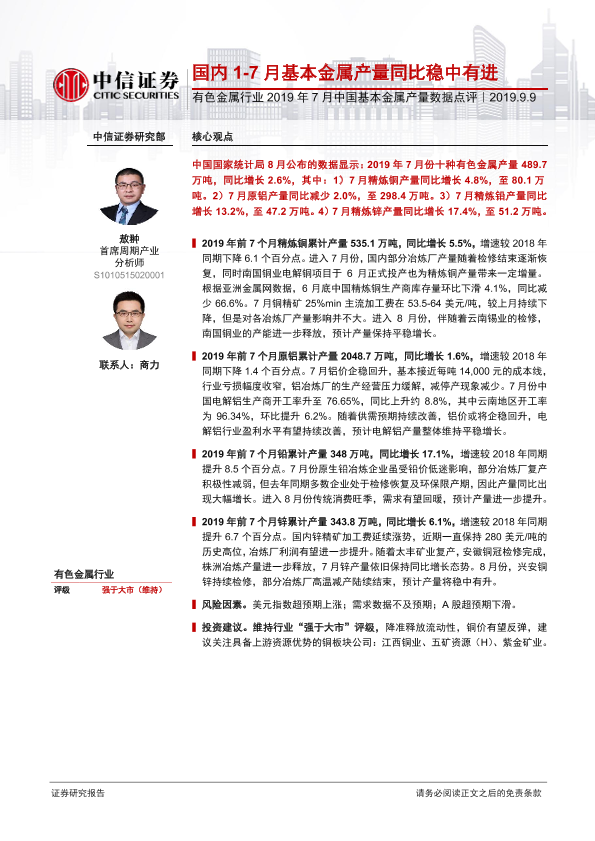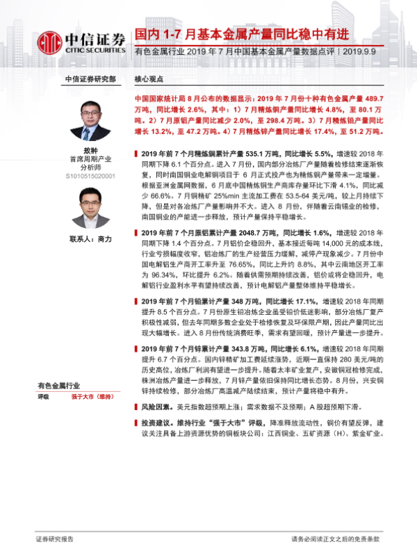 【中信证券】【20190909】2019年7月中国基本金属产量数据点评:国内1-7月基本金属产量同比稳中有进-5页