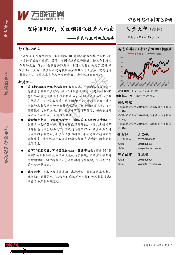 【万联证券】【20190909】20190909-万联证券-有色行业周观点报告:迎降准利好,关注铜铝低位介入机会-12页