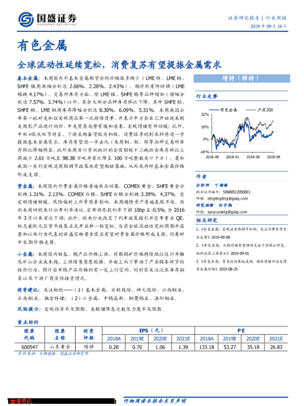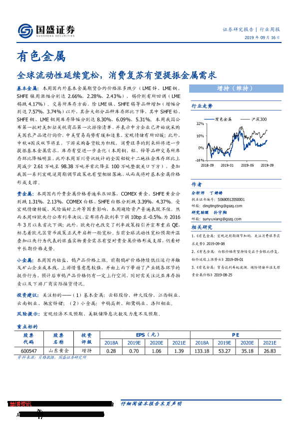 【国盛证券】【20190916】20190916-国盛证券-有色金属行业周报:全球流动性延续宽松,消费复苏有望提振金属需求-14页