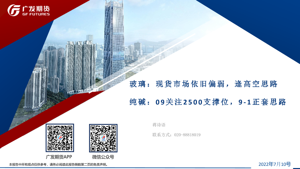 【广发期货】【20220710】玻璃,现货市场依旧偏弱,逢高空思路,纯碱,09关注2500支撑位,9_1正套思路-39页