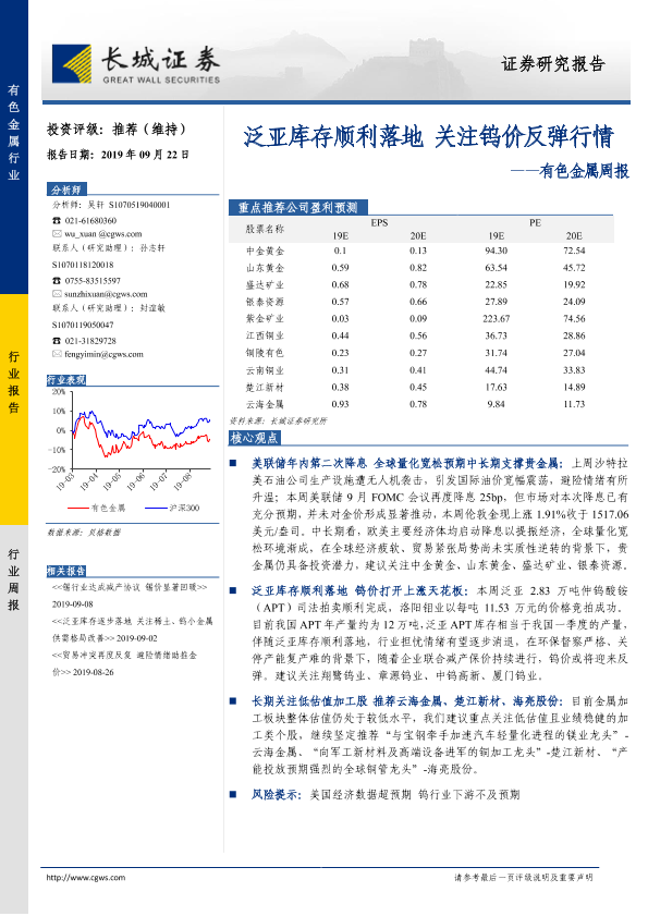 【长城证券】【20190922】20190922-长城证券-有色金属周报:泛亚库存顺利落地 关注钨价反弹行情-11页