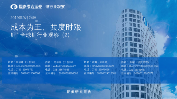 【国泰君安证券】【20190925】锂:全球锂行业观察(2):成本为王,共度时艰-48页