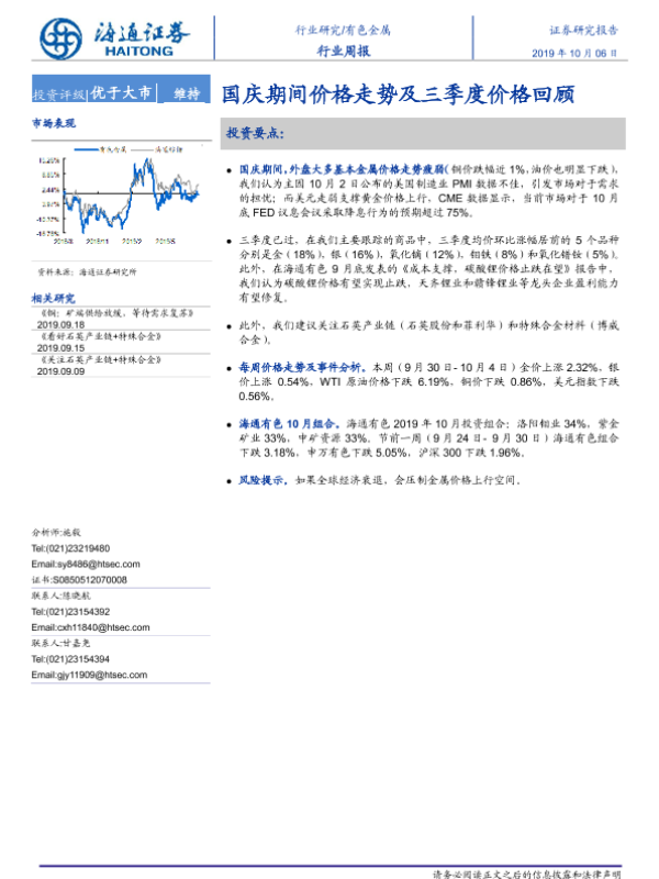 【海通证券】【20191006】有色金属行业周报:国庆期间价格走势及三季度价格回顾-8页
