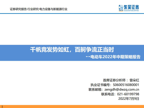 【东吴证券】【20220709】电力设备与新能源行业电动车2022年中期策略报告:千帆竞发势如虹,百舸争流正当时-150页