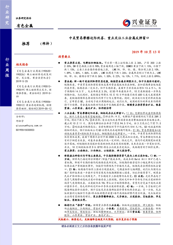 【兴业证券】【20191013】中美贸易摩擦边际改善、重点关注工业金属反弹窗口-12页