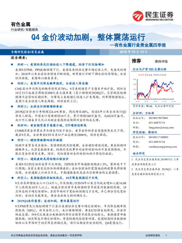 【民生证券】【20191015】20191015-民生证券-有色金属行业贵金属四季报:Q4金价波动加剧,整体震荡运行-14页