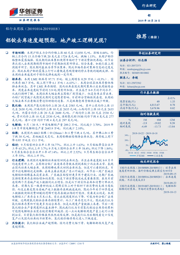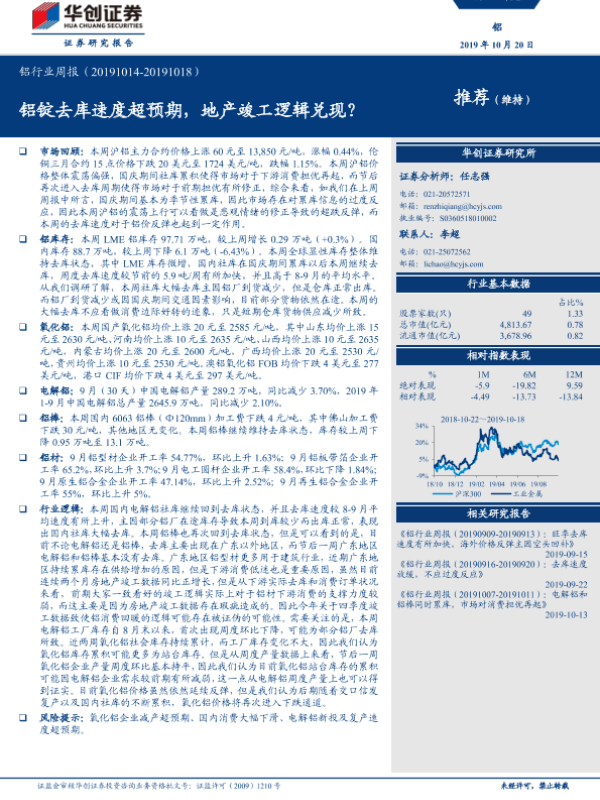 【华创证券】【20191020】20191020-华创证券-铝行业周报:铝锭去库速度超预期,地产竣工逻辑兑现?-21页