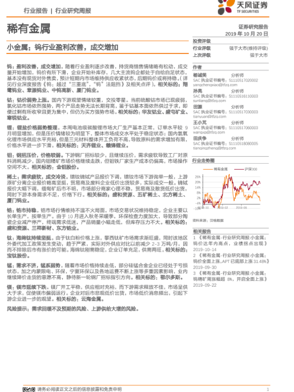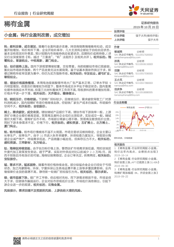 【天风证券】【20191020】小金属:钨行业盈利改善,成交增加-16页