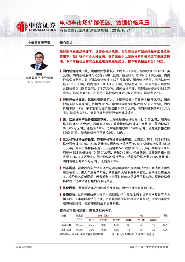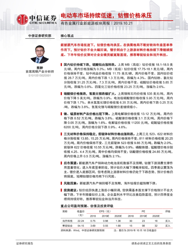 【中信证券】【20191021】20191021-中信证券-有色金属行业新能源板块周报:电动车市场持续低迷,钴锂价格承压-13页