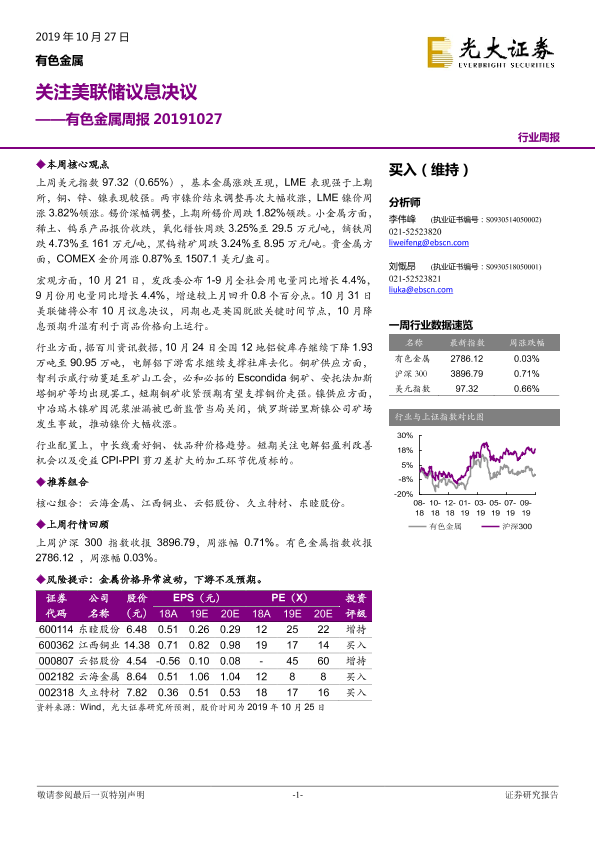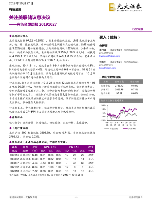 【光大证券】【20191027】20191027-光大证券-有色金属周报:关注美联储议息决议-13页