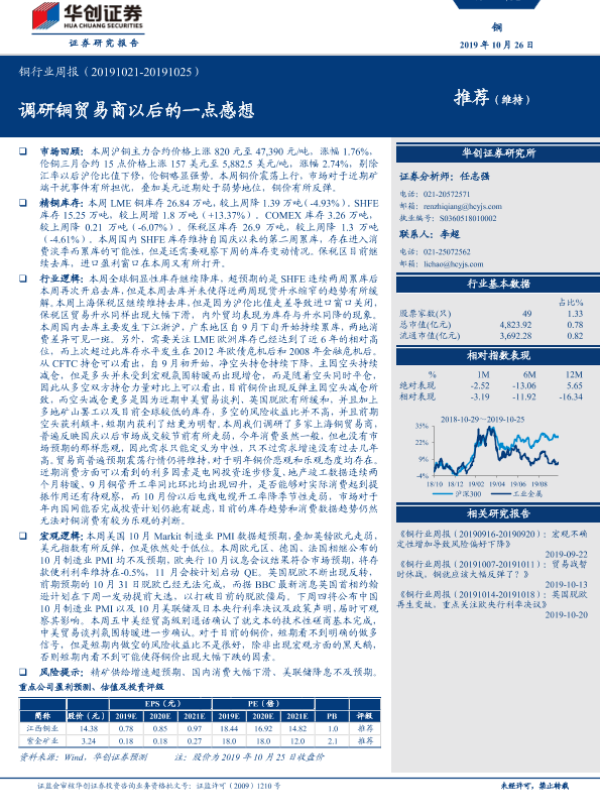 【华创证券】【20191026】20191026-华创证券-铜行业周报:调研铜贸易商以后的一点感想-19页