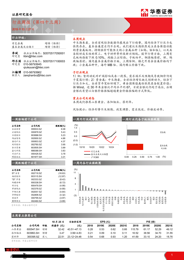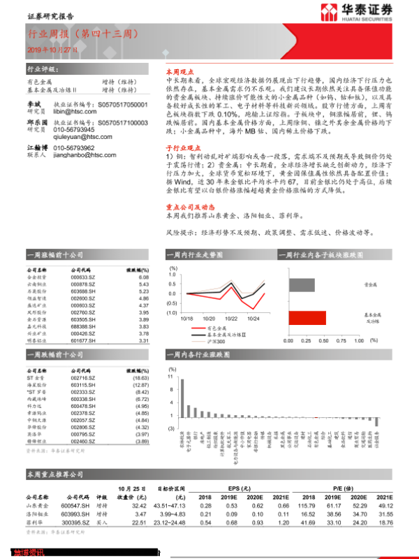 【华泰证券】【20191027】20191027-华泰证券-有色金属行业周报(第四十三周)-13页