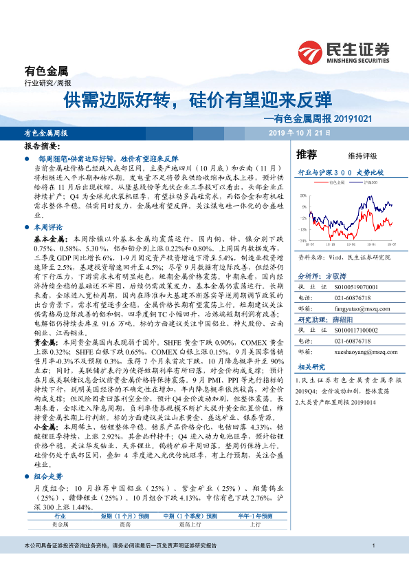 【民生证券】【20191021】20191021-民生证券-有色金属周报:供需边际好转,硅价有望迎来反弹-30页