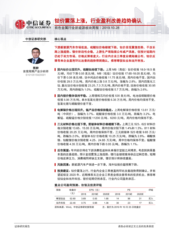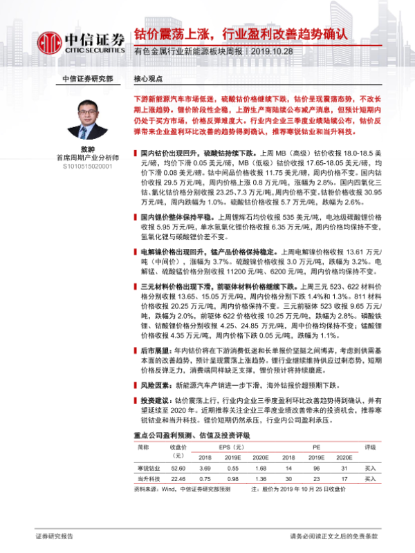 【中信证券】【20191028】20191028-中信证券-有色金属行业新能源板块周报:钴价震荡上涨,行业盈利改善趋势确认-13页