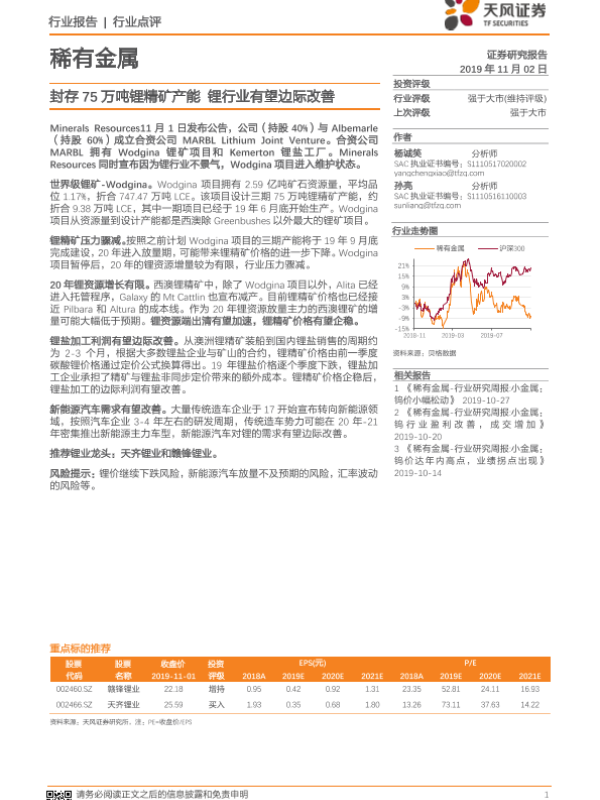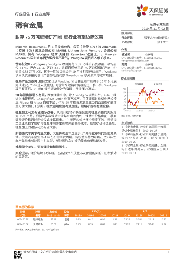 【天风证券】【20191102】稀有金属行业点评:封存75万吨锂精矿产能 锂行业有望边际改善-2页