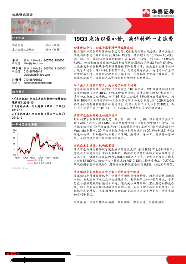 【华泰证券】【20191101】有色金属:19Q3采冶以量补价,高科材料一支独秀-2页