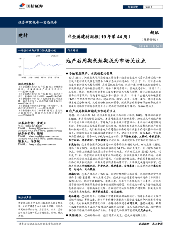 【国信证券】【20191104】20191104-国信证券-非金属建材周报(19年第44周):地产后周期或短期成为市场关注-15页