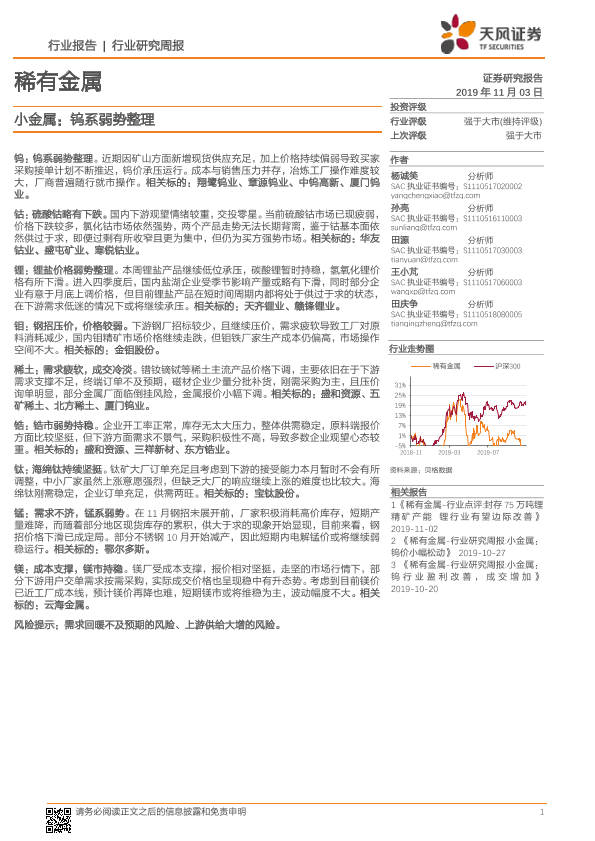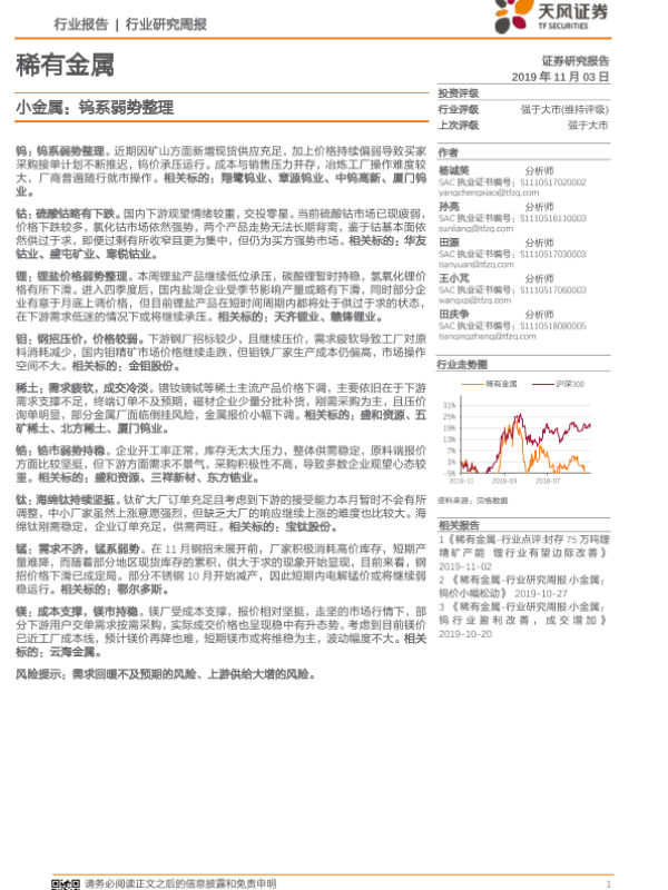 【天风证券】【20191103】20191103-天风证券-小金属:钨系弱势整理-16页