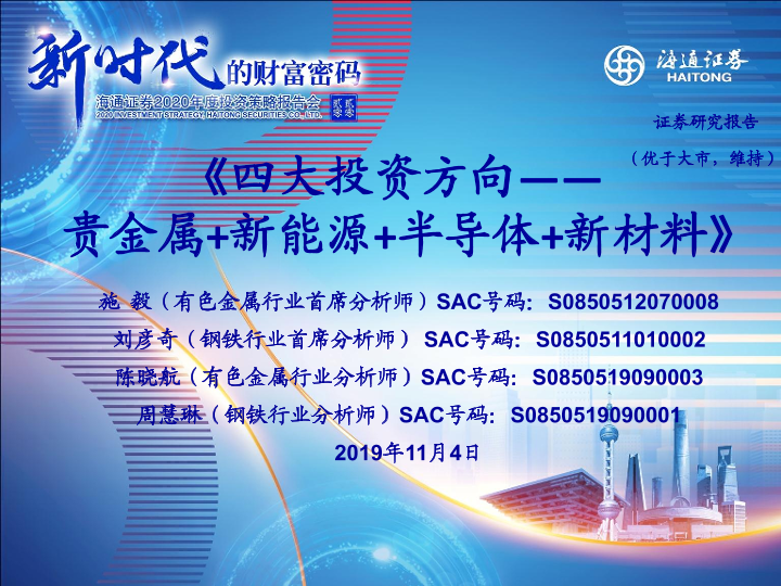 【海通证券】【20191104】20191104-海通证券-有色金属行业:《四大投资方向-贵金属+新能源+半导体+新材料》-10页