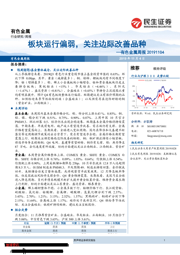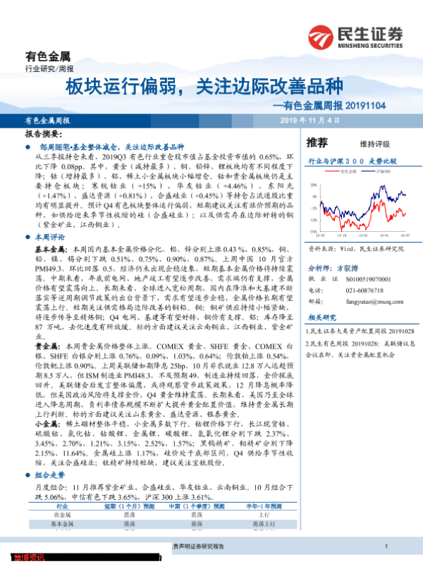【民生证券】【20191104】20191104-民生证券-有色金属周报:板块运行偏弱,关注边际改善品种-30页