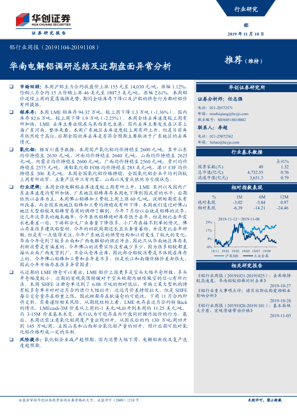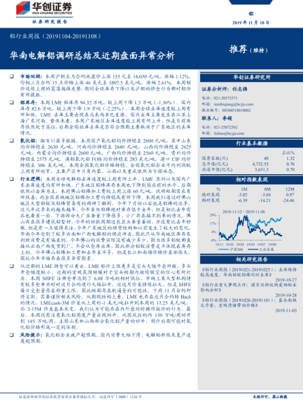【华创证券】【20191110】20191110-华创证券-铝行业周报:华南电解铝调研总结及近期盘面异常分析-22页