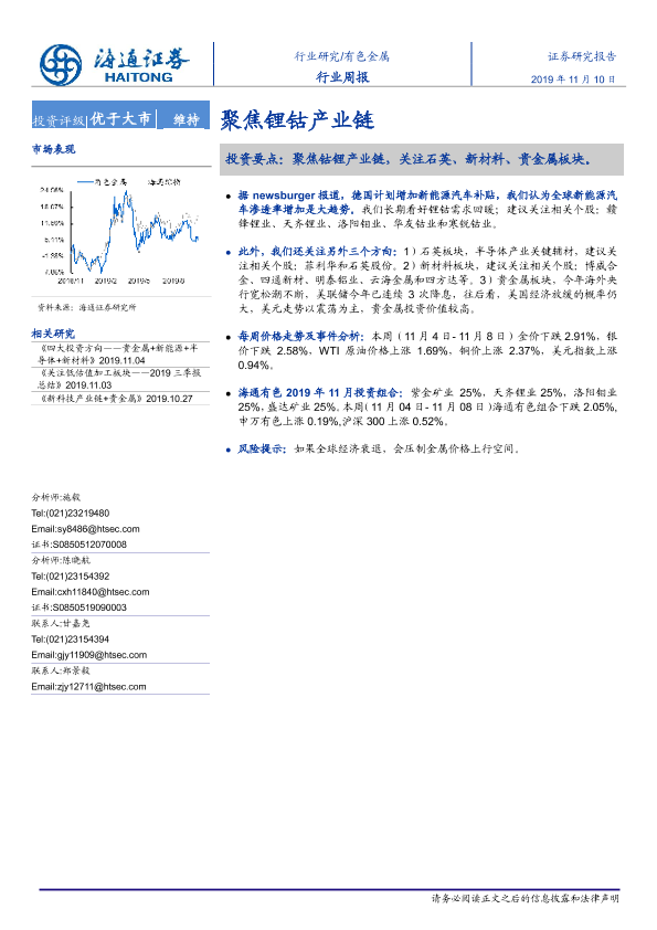 【海通证券】【20191110】20191110-海通证券-有色金属行业周报:聚焦锂钴产业链-8页