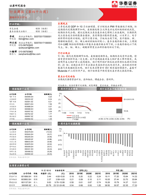 【华泰证券】【20191117】20191117-华泰证券-有色金属行业周报(第四十六周)-12页
