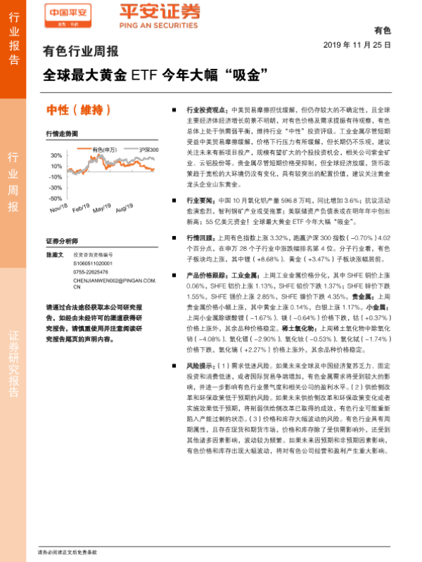 【平安证券】【20191125】20191125-平安证券-有色行业周报:全球最大黄金ETF今年大幅“吸金”-5页