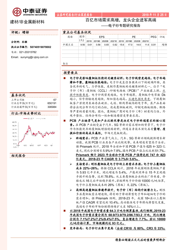 【中泰证券】【20191125】电子纱专题研究报告:百亿市场需求高增,龙头企业进军高端-26页